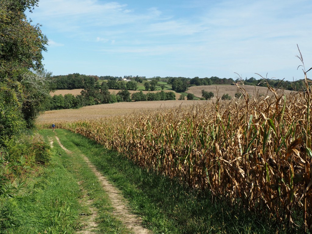 Our journey across France took a day off today after 12 straight days of changing countryside, dwindling fellow trekkers, and mostly scorching heat. A sprinkle of rain offered a day of relative cool while the trail led us over miles and miles of hot pavement on farm roads and, lately, through vineyards and corn fields. Yesterday marked a day when we saw just four other trekkers, quite the contrast from the pilgrim stampede of five weeks ago.