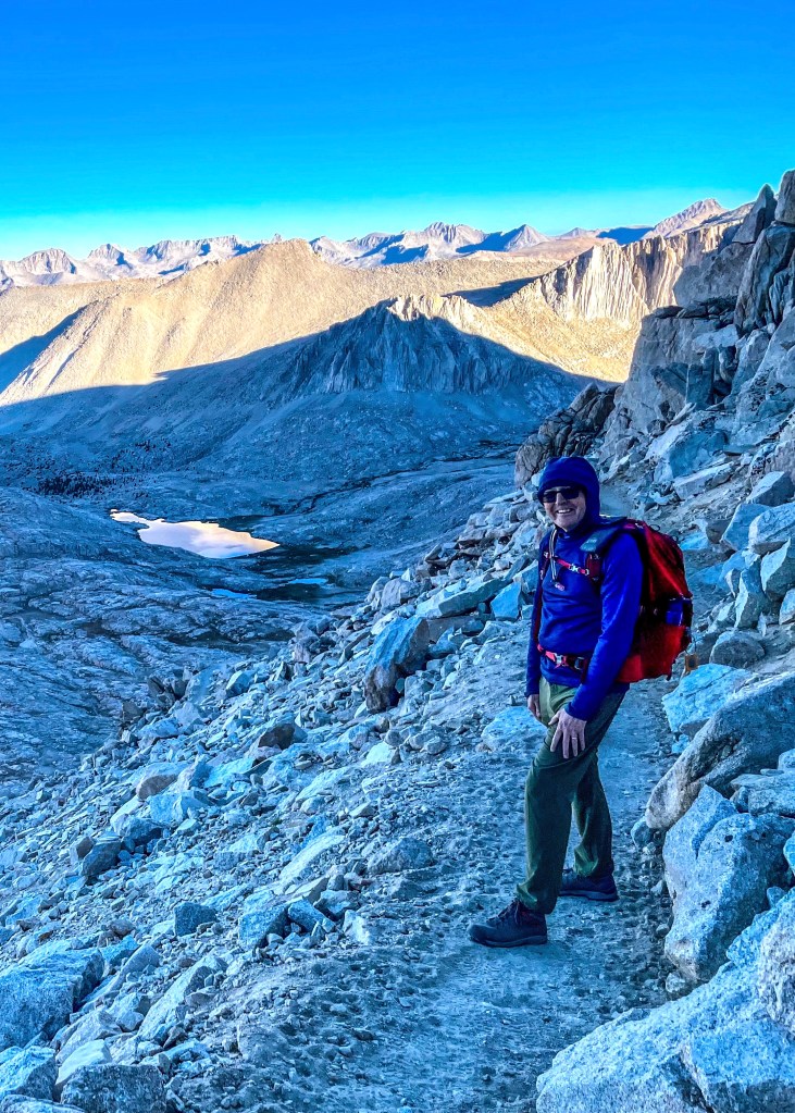 I paused on my way to the Mount Whitney summit in California’s Sierra Nevada, Guitar Lake posing behind me.
