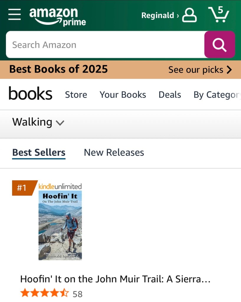 Hoofin’ It on the John Muir Trail has hovered in the top ten in several categories, but today it made the leap to the top in the Kindle walking category.