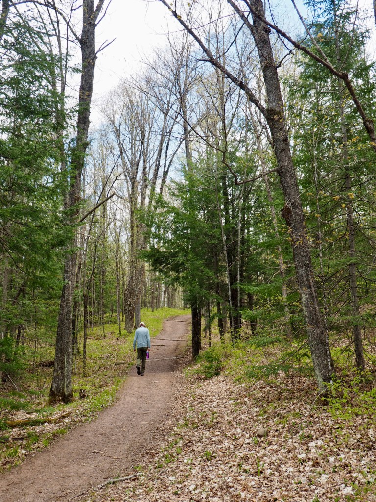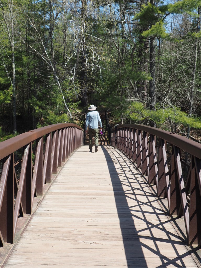 The answer (Neither) may be a surprise, unless you are a fan of the North Country Trail, which stretches 4,700 miles from Vermont to North Dakota. We walked two spectacular sections of the path in Wisconsin today within Copper Falls State Park. Hikers in the northern Wisconsin park can view Copper Falls, Brownstone Falls (pictured above) and Red Granite Falls from the trail’s viewpoints, which are accessed via several bridges.