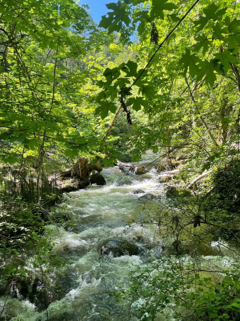 Ashland Creek roars through Lithia Park, where I walk almost daily on my way to many choices of hillside trails in Ashland, Oregon. The creek is fed by snowmelt from our local ski resort, Mount Ashland. I am fortunate the park is just a few minutes away from my front door as I try to stay in shape for Sue’s and my longest trekking challenge yet. More on that to come!